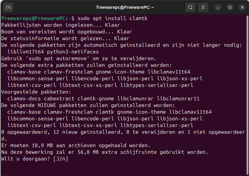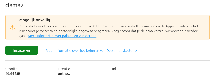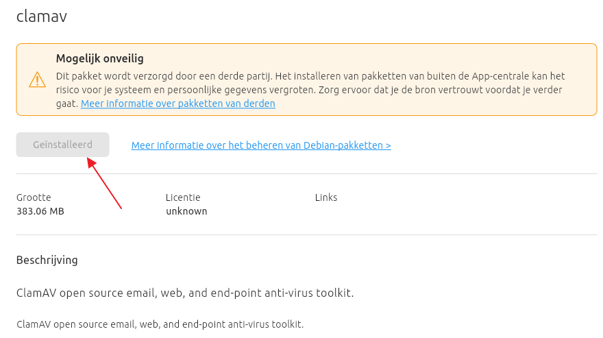 We kunnen nu ClamAV installeren door op de knop ‘Installeren‘ te klikken.
