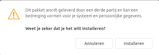 (omdat deze applicatie via een derde partij geinstalleerd wordt verschijnt er een beveiligingswaarschuwing. Deze kun je bij deze installatie met een gerust hard negeren)