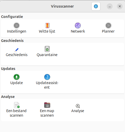 Je kunt hiermee de applicatie ClamAV volledig beheren.