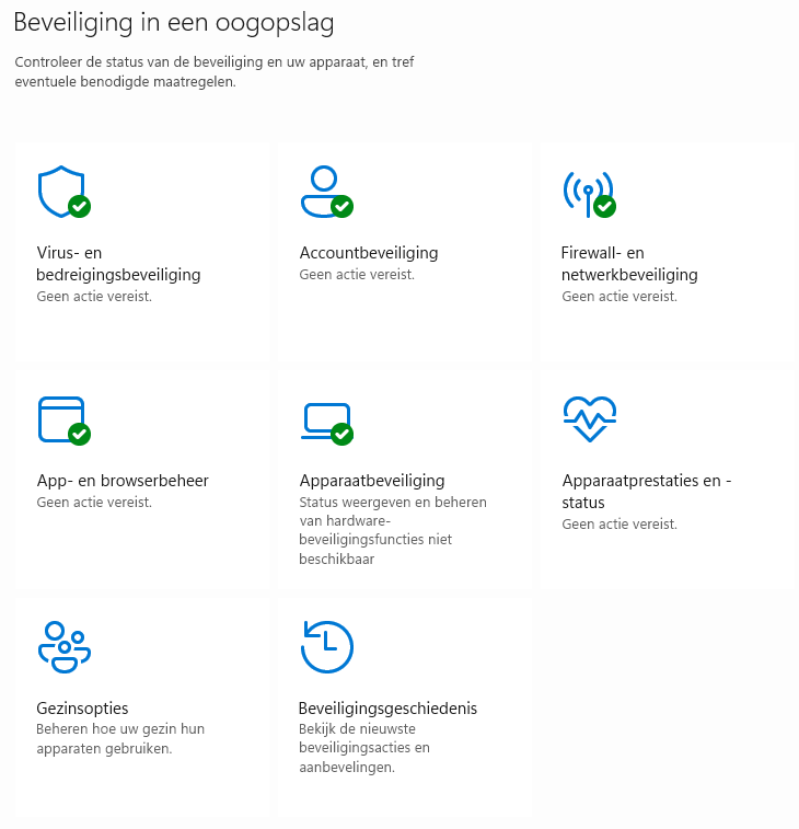 Je vindt hier ook een Firewall, Gezinsopties als ook App- en Browser beheer/beveiliging.