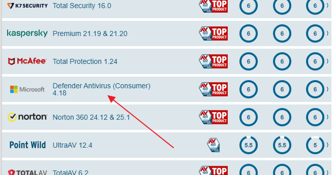 Hieronder zie je de score zoals deze weergegeven is op av-test.org.