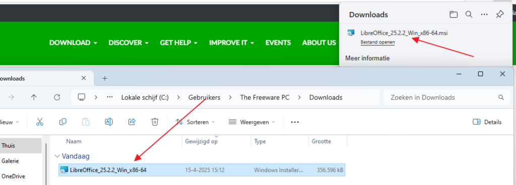 Om LibreOffice te kunnen installeren dienen we het installatie bestand van de meest actuele versie te downloaden. Je kunt LibreOffice downloaden in de taal die jij wenst. Je kunt voordat je de download start aangeven welke versie en welke taal je wilt downloaden.