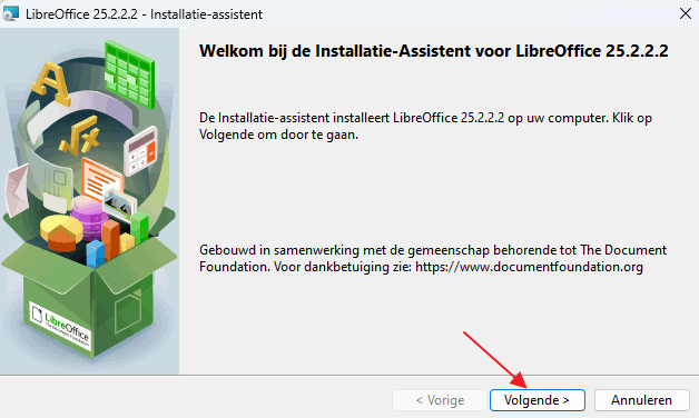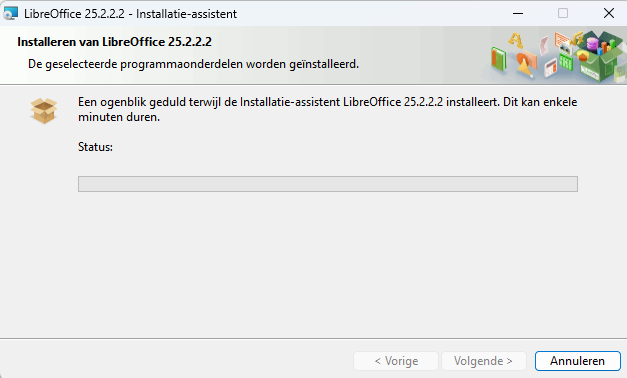 Na het klikken op het bestand zal de installatie van LibreOffice beginnen.