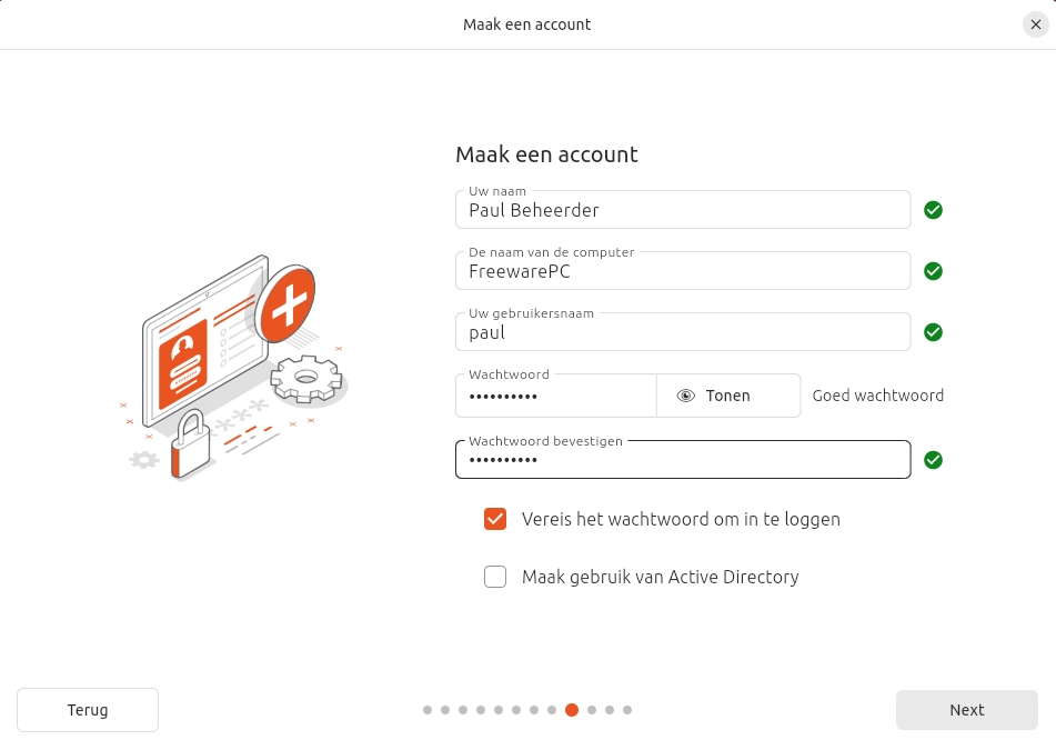 Je zult dan een aantal stappen opnieuw moeten doen zoals het selecteren van de taal, de toegankelijkheid in Ubuntu, de toetsenbord indeling en de netwerkverbinding selectie.