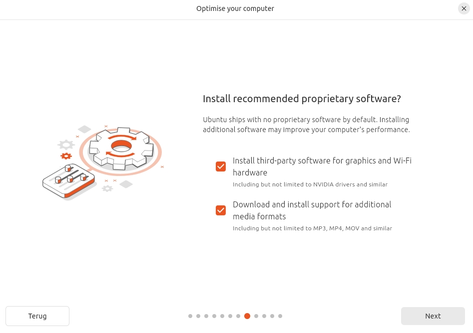 Nu krijgt je de mogelijkheid om additionele software te installeren. Aangeraden wordt om dat te doen.