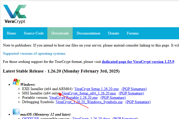 Dat kan vanaf de website van de maker van VeraCrypt. Download VeraCrypt
