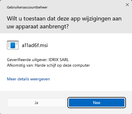 Bevestig de melding in de popup (UAC) door op ‘Ja‘ te klikken en de installatie zal starten.